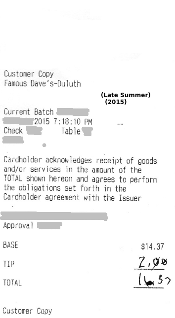 Famous Dave’s Restaurant – Duluth, MN – Receipt
