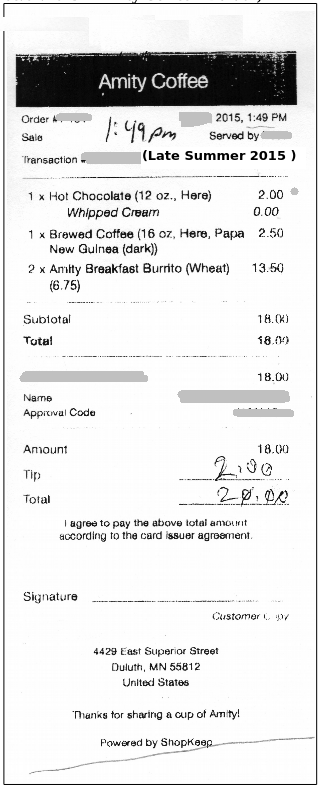 Amity Coffee – Duluth, MN – Receipts (2x)